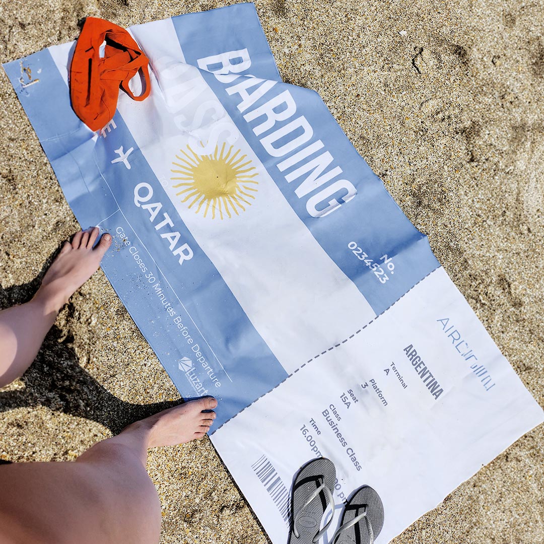 La Boarding Pass Toalla Deportiva Personalizada es el regalo ideal para amantes de los viajes y del deporte. Diseñada como una tarjeta de embarque en formato toalla, podés personalizarla con tu ciudad de origen y destino, el nombre del pasajero y hasta los datos del vuelo, como hora, puerta, asiento o clase.