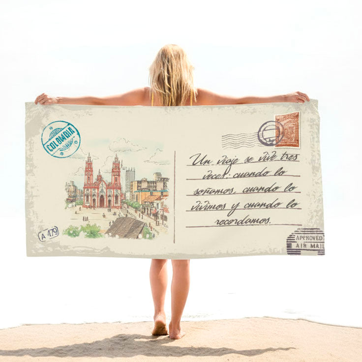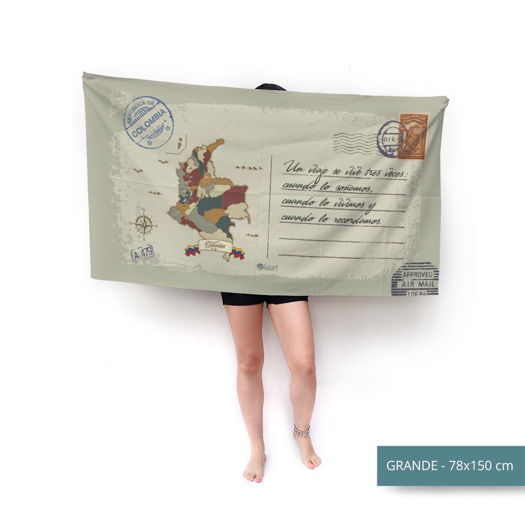 Colombia Toalla con Mensaje Personalizado Estilo Postal