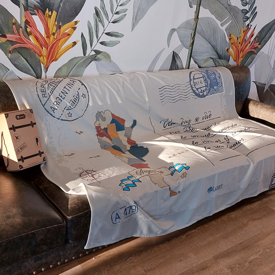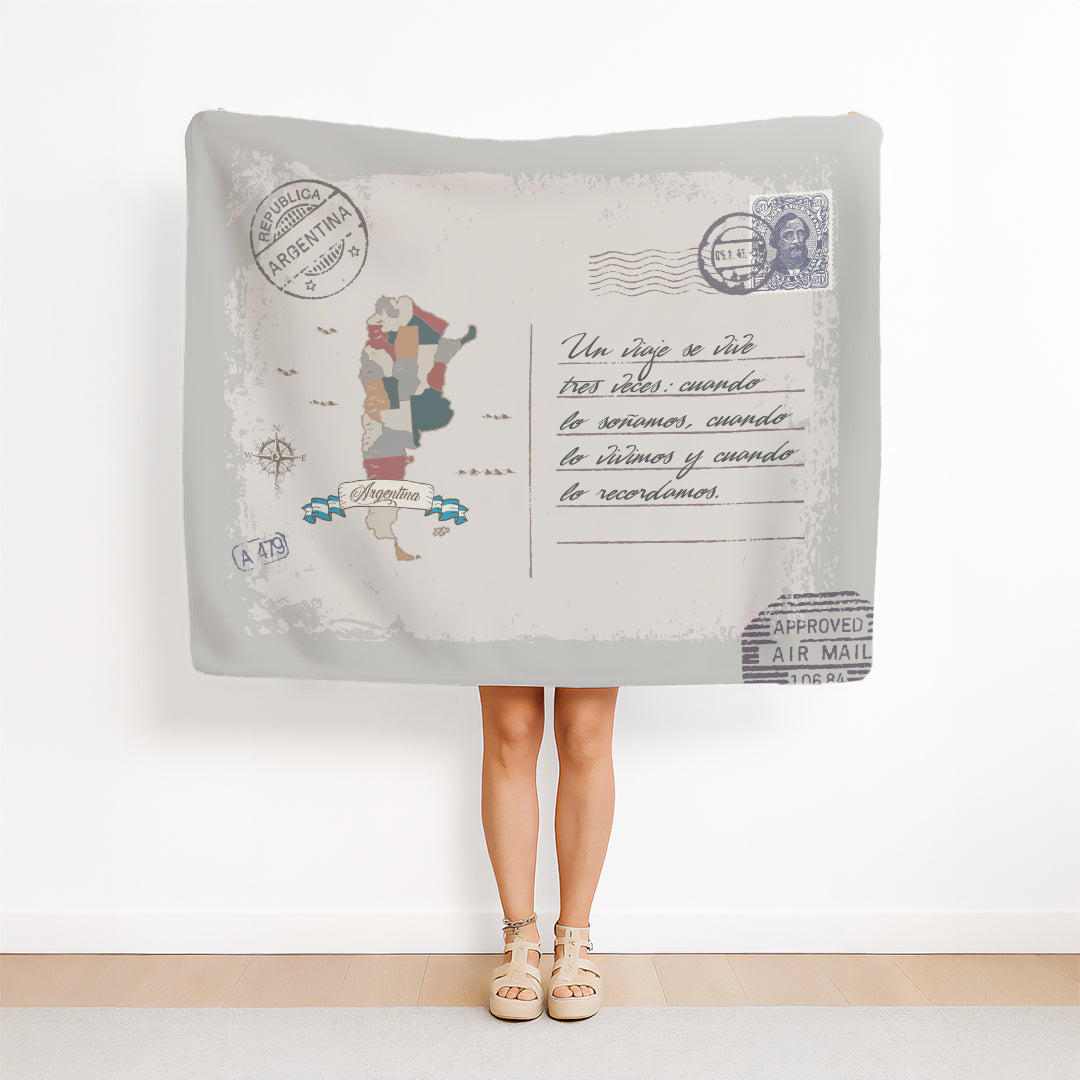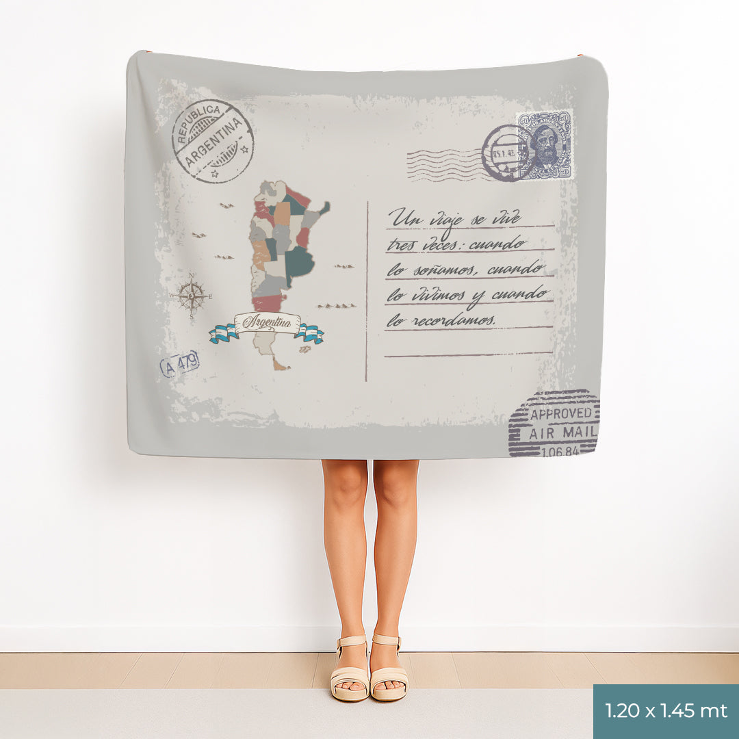 Mapa Argentina Manta con Mensaje Personalizado Estilo Postal
