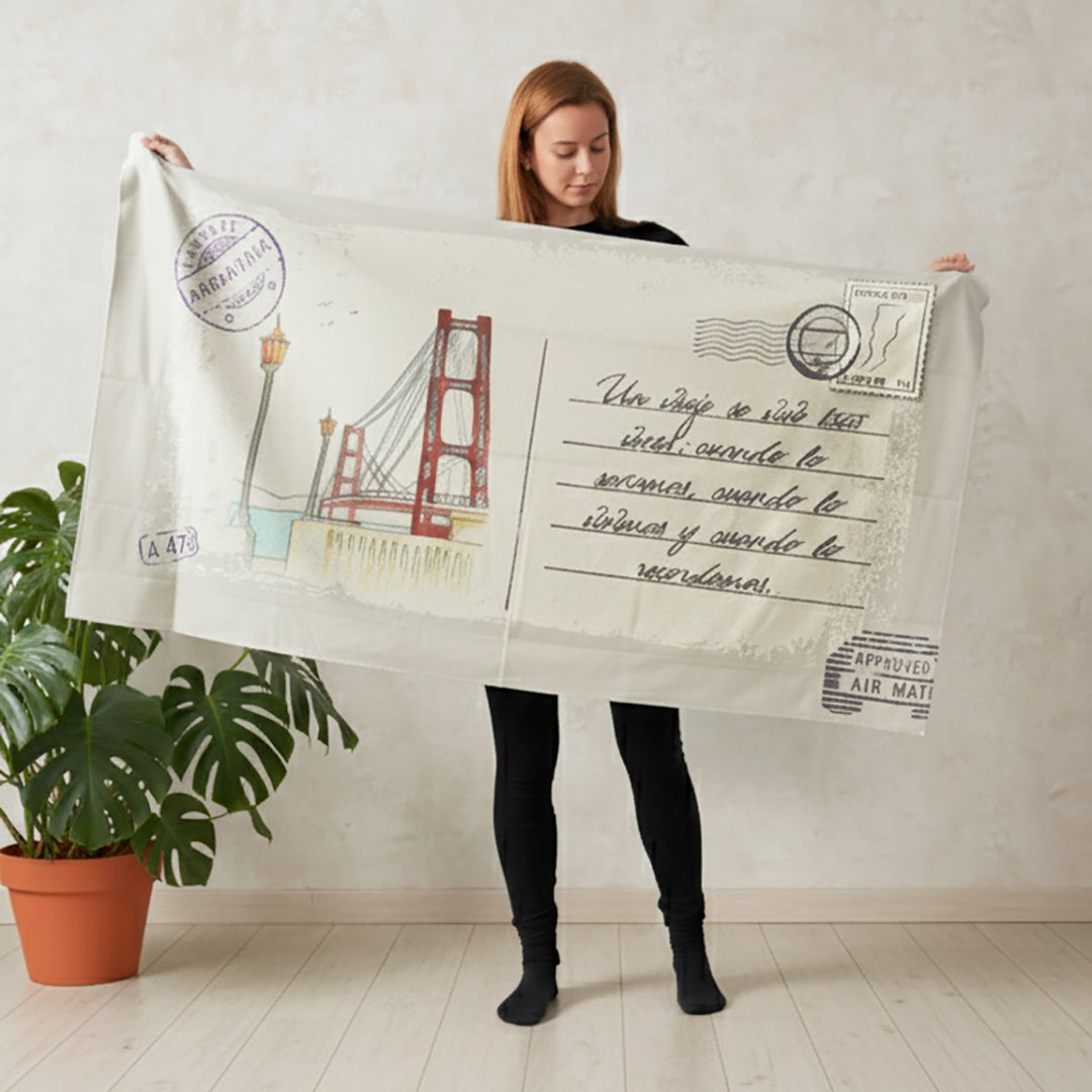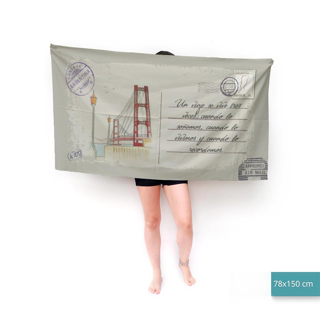 Si de regalos prácticos se trata, dejame contarte de esta Toalla Deportiva con diseño de postal que se personaliza con tu mensaje.