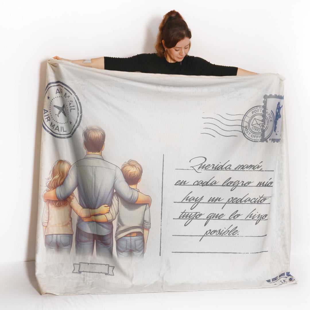 La Manta Personalizada con Foto Estilo Postal es un regalo original y emotivo, ideal para sorprender a familiares y amigos que viven en el exterior. Podés personalizarla con tu foto favorita y un mensaje especial, creando un recuerdo único lleno de significado.